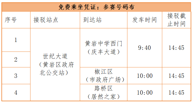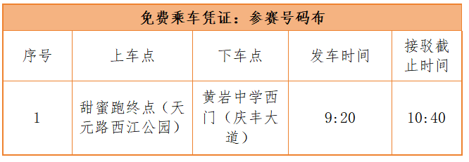 4.乘车方式:参赛选手凭参赛号码布免费乘车