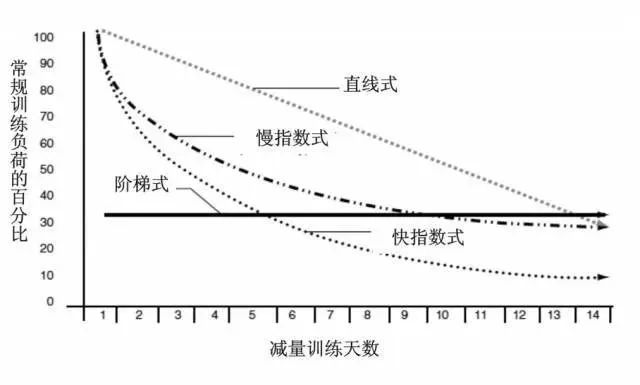 • 在比赛前减量期间,负荷量应该减少60%~90%。