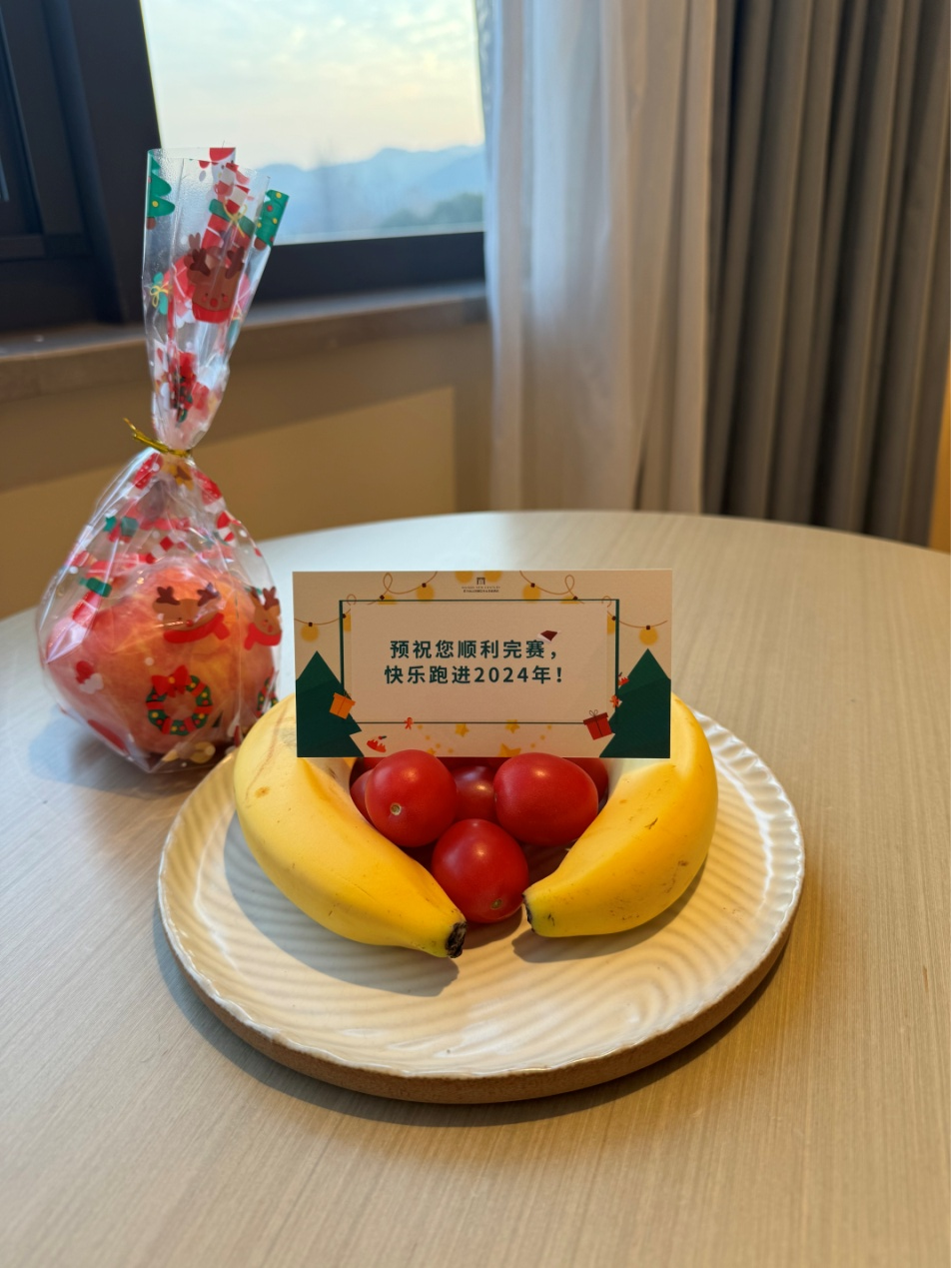 2023年的德清莫干山竹海马拉松,和往年一样依然在12月中下旬举办,不过今年恰值平安夜,惊喜地收到了酒店贴心准备的预祝安全完赛小卡片和平安果。但这可不是我第一次参加德清莫干山竹海马拉松。